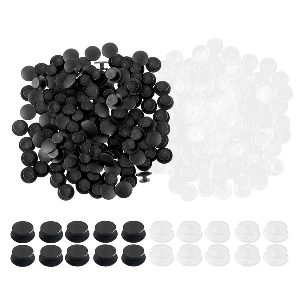 Yoogeer 200Pcs Round Plastic Buttons, DIY Shoe Charm Accessories (Black, Clear, 12mm x 10mm x 6.1mm)