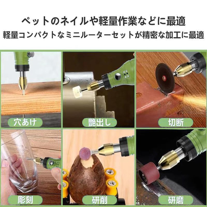 - TYPE-C Rechargeable and Cordless: This rechargeable router model is a mini router cordless and has powerful power, making it perfect for DIY and home renovations. Uses a lithium battery that can be connected and charged via TYPE-C rechargeable battery. It can continue to work for about 1.5 hours with no load. Can be used for glass carving, metal polishing, drilling, polishing, model crafts, etc. Easy to use in a wide variety of locations, such as DIY and hobbies