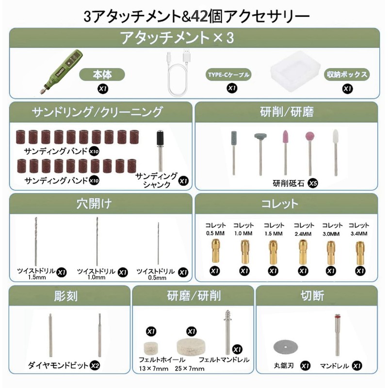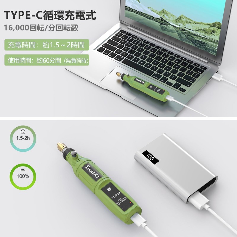 YooiDO Mini Router, Router, 3.7 V, Wireless Router, 3 Speeds, Up to 16,000 RPM/Min, 41 pcs, Wireless Router Tool, TYPE-C Rechargeable, Polishing, Polishing, Rust Removing, Cutting, Polishing, Nail