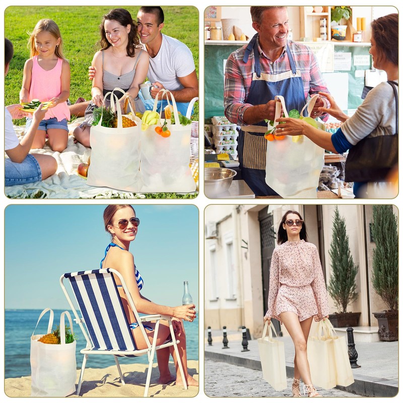 - Blank Design: these reusable grocery bags come with blank surfaces, suitable for personalizing with fabric paint, stamps, markers, etc.Whether adding a pattern or creating a unique design, you can unleash your creativity and DIY your own bags