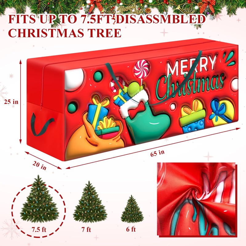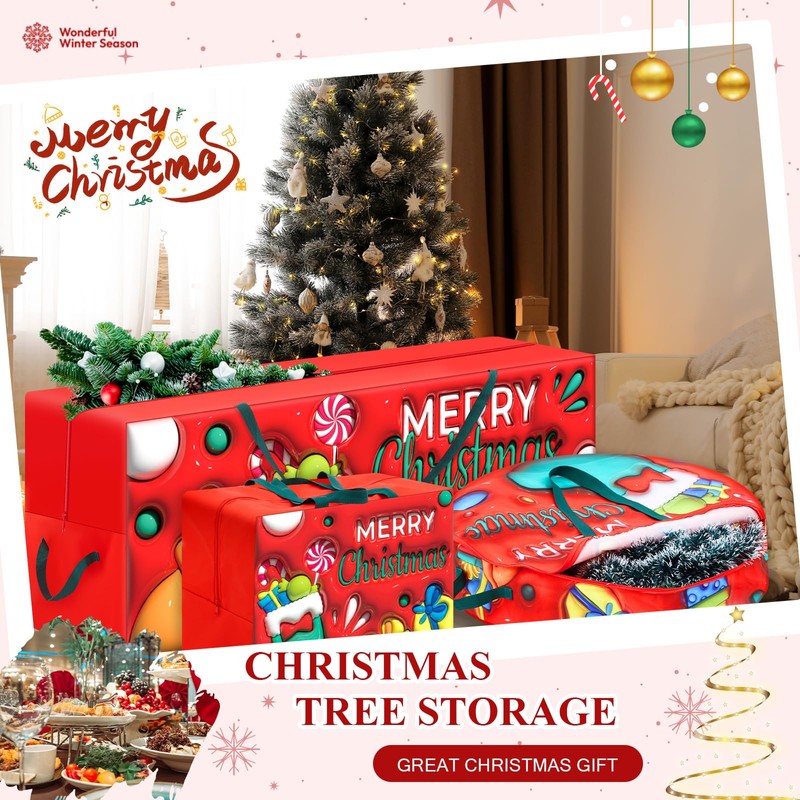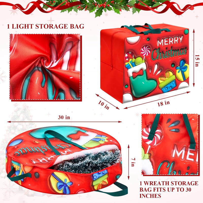 - Christmas Storage Bag Set: package includes 1 pc large Christmas tree storage container, which can hold a 9 ft tall detachable Christmas tree, 1 pc 30 inch Xmas wreath storage bag, 1 pc light string storage bag; The exquisite Christmas element pattern design on the storage bag adds a Christmas atmosphere while storing