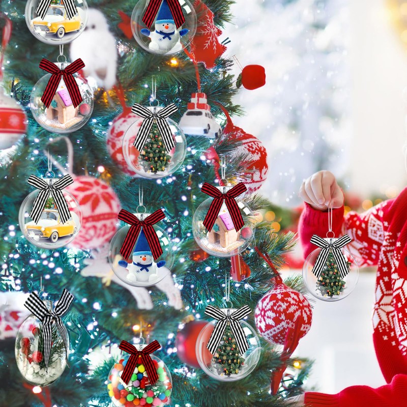 - What you will get: the package comes with 32 pieces of clear fillable ornaments balls and 32 pieces of buffalo plaid bows, a total of 64 pieces, the large number of quantity can suffice your various decorative needs, you can also share them with your friends