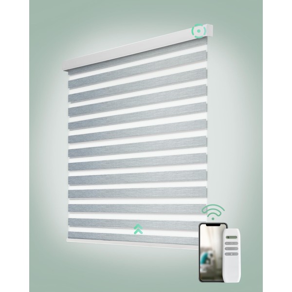 Yoolax Motorized Zebra Blinds, Remote Zebra Shades for Indoor Windows, Motorized Blinds with Remote Light Control Horizontal Window Blinds (80% Shading Luxury Grey, 35" x 72")