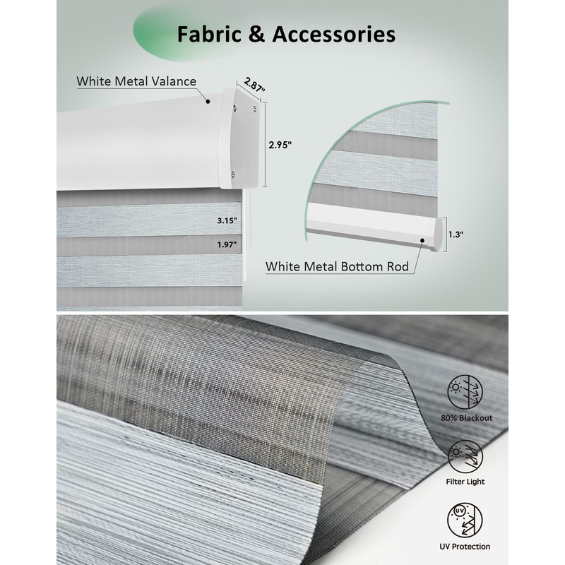 - 【Privacy & Light Control】Yoolax smart zebra blinds, crafted from a dual-layer fabric with alternating sheer and solid stripes, offer the ultimate in light filtering and privacy protection. The opaque stripes ensure privacy and room darkening, while the sheer stripes allow for light filtering and glare reduction. Brighter or darker? It's all in your hands! Get ready for compliments—guests will be impressed by the high-quality fabric, sleek design, and cutting-edge functionality of zebra shades.