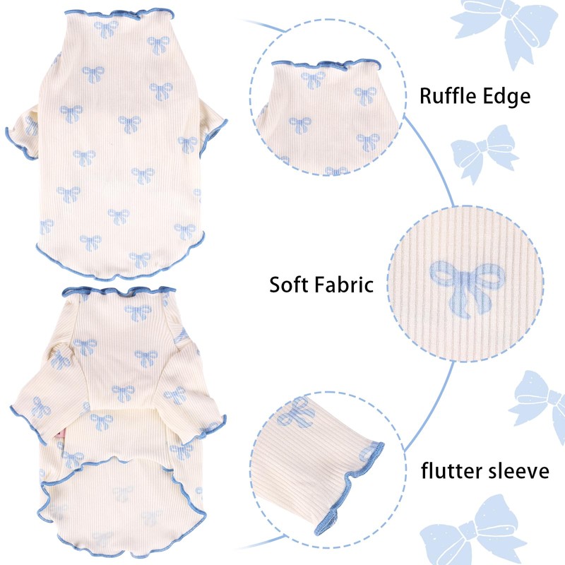 - Cute Small Dog Clothes: Adorable and stylish small dog outfits with bow print, available in pink white and blue. Perfect for female puppies, Chihuahuas, Shih Tzus, Yorkshire Terriers and even cats.