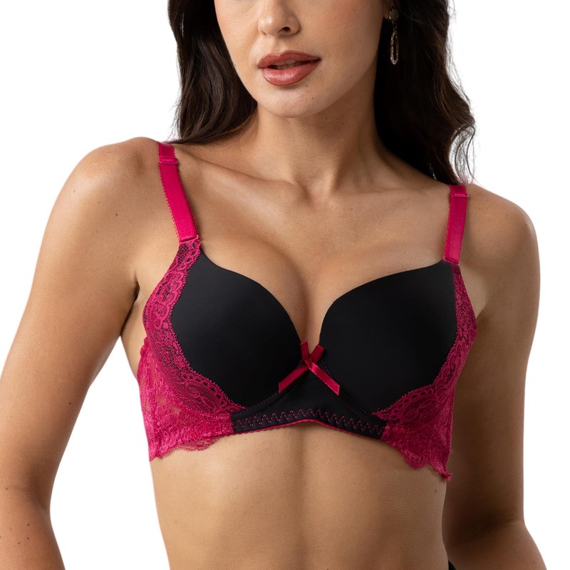 YooMee Push Up Bra for Women,Lace Bras with Underwire Cups,Comfort Padded T-Shirt Bra Add One Cup