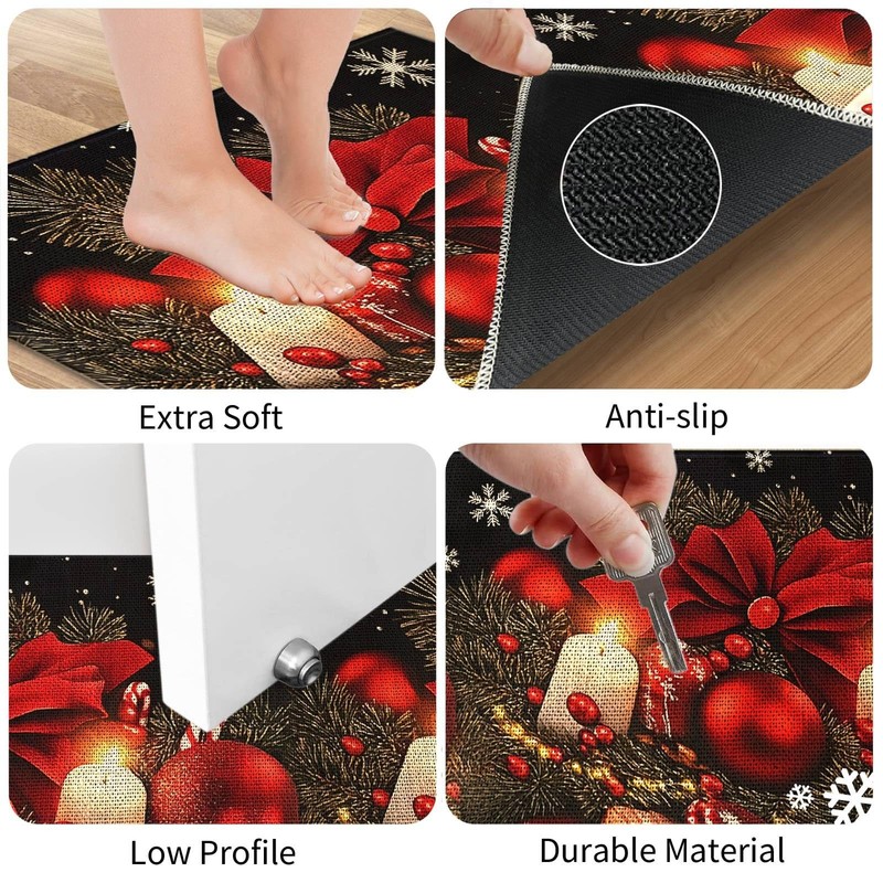 - Water-Resistant: The water-resistant surface of these Christmas rugs protects your kitchen floor from spills, moisture, and stains. Ideal for use near the sink, stove, or any area prone to water exposure.
