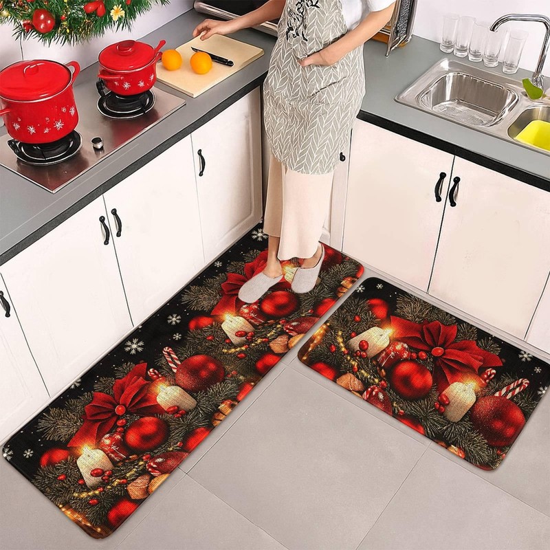 - Durable & Long-Lasting: Crafted from high-quality materials, this set of 2 Christmas kitchen rugs is designed to endure daily wear, spills, and foot traffic, providing reliable protection and lasting beauty in your kitchen for years to come.