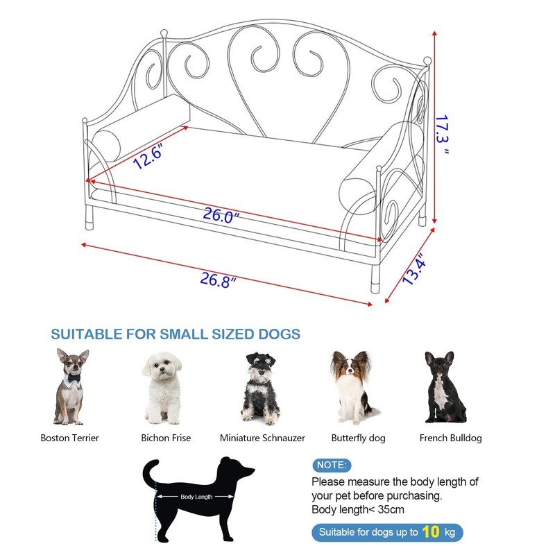 - 【Premium Materials】 pure handmade luxury pet bed sofa for small pet adopt iron pipe and Eco-friendly plywood . product construction is very sturdy and durable. detached soft cushion and pillow cover can hand wash or machine wash. Iron pipe surface process is baking finish.not easy shedding and deformation.K/D packing.