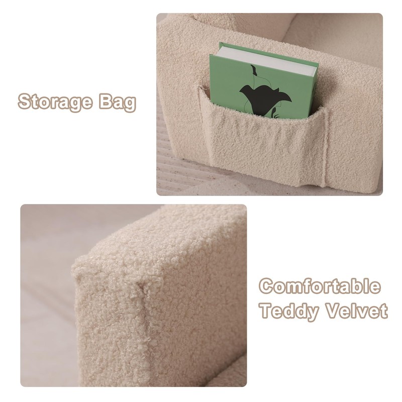 Yoonnie room Foam Kids Sofa Chair, 2 in 1 Convertible Sofa toToddler Couch, Baby Sofa Bed,Soft Toddler Chair, Foam Filling and Teddy Cover, Kids Couch for Boys and Girls (W56cm) (Beige)