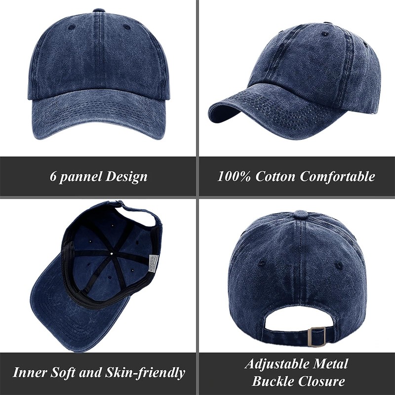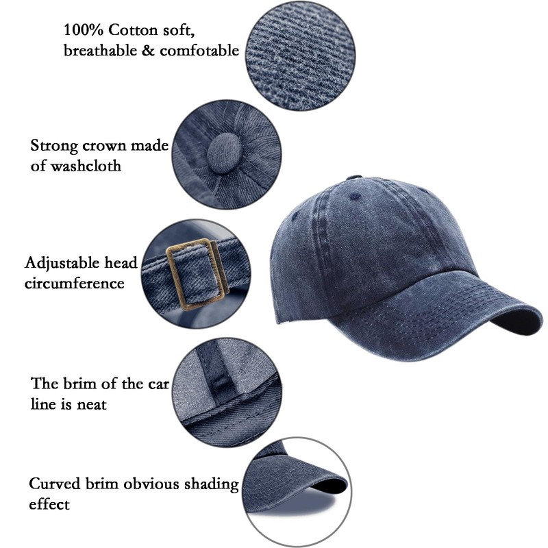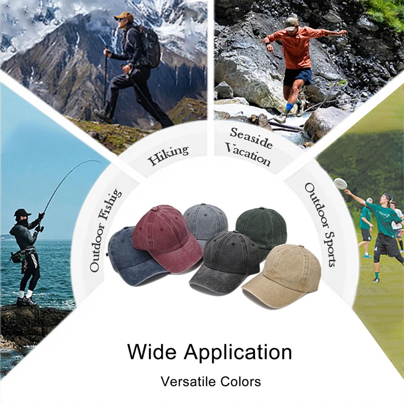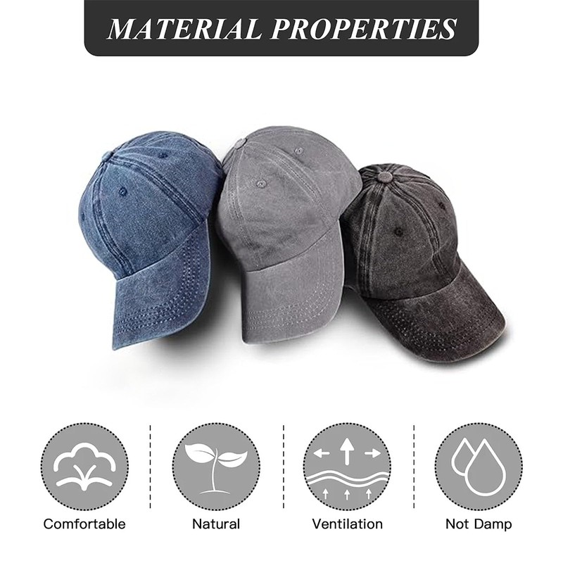 - Classic Washed Cotton Design & Breathable Comfort Crafted from premium vintage-style washed cotton, these low-profile baseball caps feature a soft, unstructured crown for a timeless, relaxed look. Six strategically placed air vent holes ensure superior airflow, making them ideal for running, hiking, gardening, or daily wear.