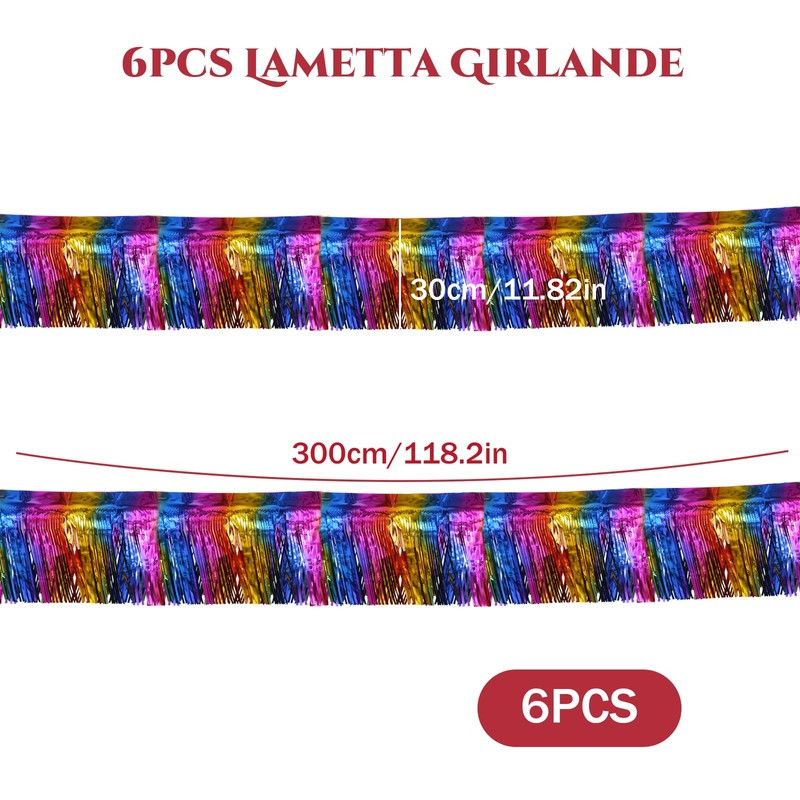 - High-quality metallic foil fringe garlands = Our pack contains 3 pieces each measuring 30 cm x 3 m, ideal for indoor and outdoor decorations to create a festive atmosphere.
