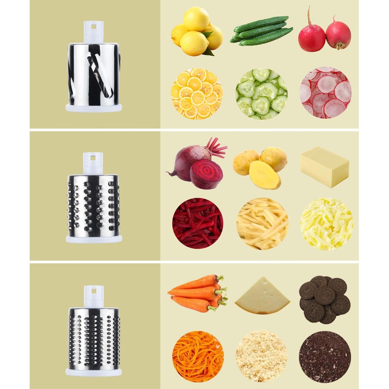 • GRATE, SLICE, AND SHRED: With 3 interchangeable stainless steel blades, it allows for effortless shredding, slicing, and grating. Perfect for cheese, cucumbers, potatoes, carrots, and various other ingredients to meet diverse kitchen needs