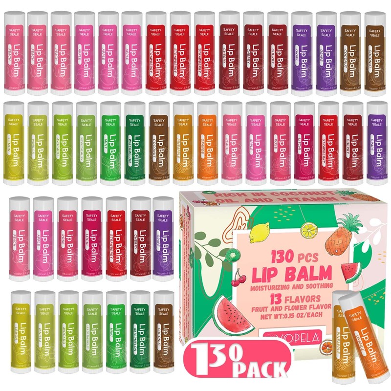- 【Convenient Size For On-The-Go Use】The net content of each lip balm is 0.15 oz,there are 130 lip balm bulk in a pack . If you go out, just take one and put the lip balm in your pocket,you can take it out and use it at any time.Perfect bulk item for women men kids or bulk party favors for adults