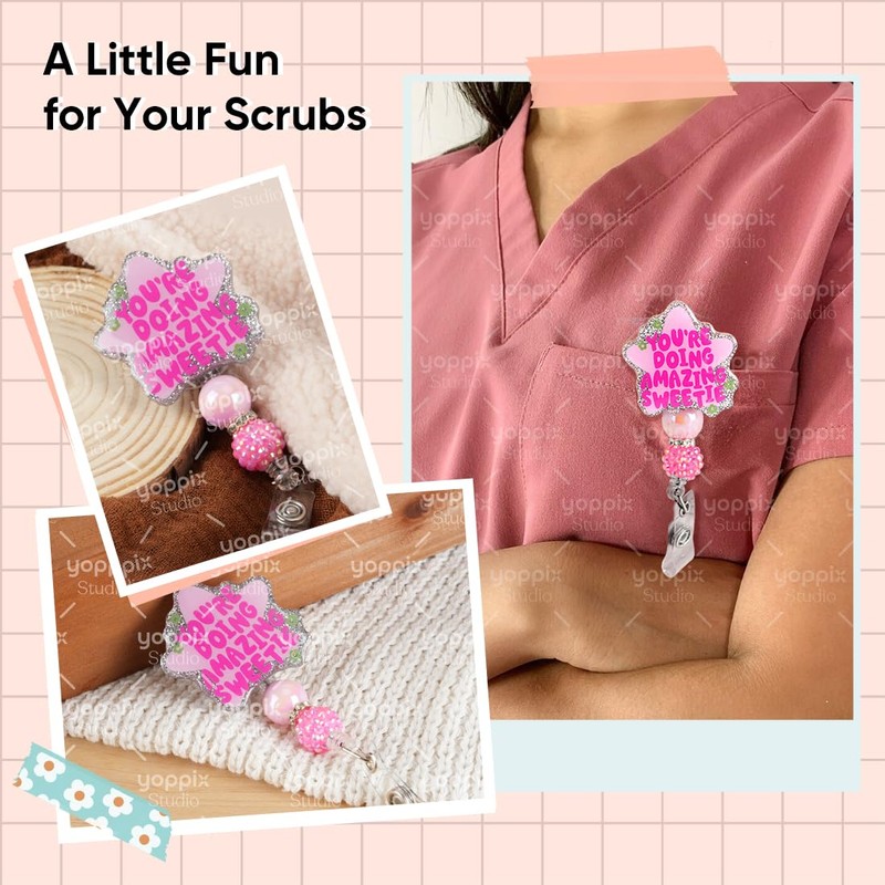 YOPPIX You're Doing Amazing Sweetie Badge Reel, Sassy Funny Sparkly Glitter Retractable Badge Reel for Nurses RN EN Doctor Paramedic Teachers Medical Office Womens