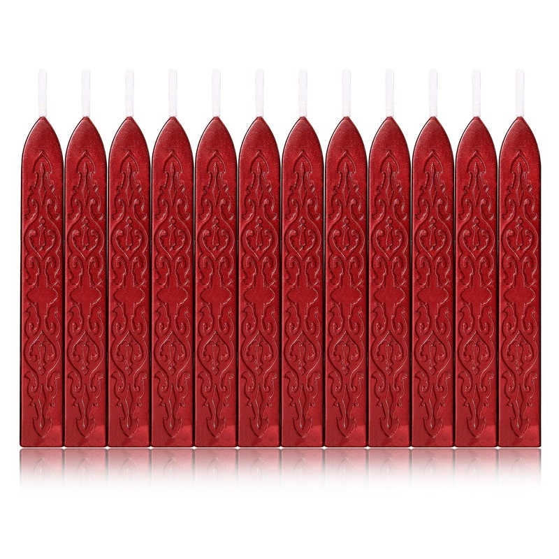 Yoption 12 Pcs Sealing Wax Sticks with Wicks, Antique Metallic Red Totem Fire Manuscript Seal Wax for Wax Seal Stamp (Metallic Red)