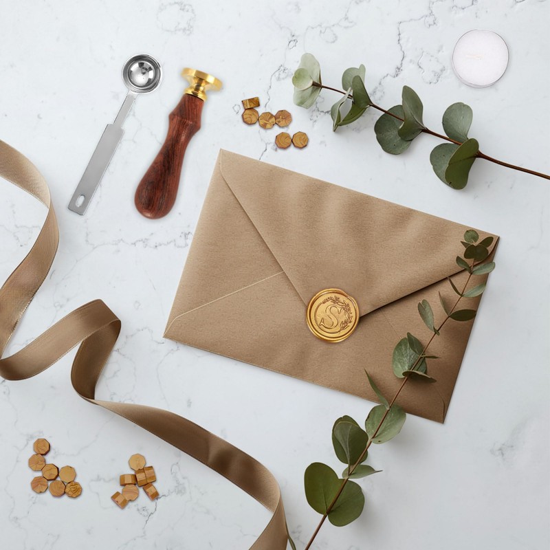 - 【Wax Seal Beads】Comes with antique gold swaling wax beads, the color of the wax beads is metallic, retro and delicate, and paired with the wreath letter stamp, it will add special charm to your invitations.