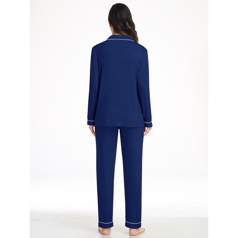 YOPUGEE Womens Modal Button Up Pajamas 2 Piece Long Sleeve Pjs Sleepwear Soft Pajama Lounge Set Loungewear Navy Blue L