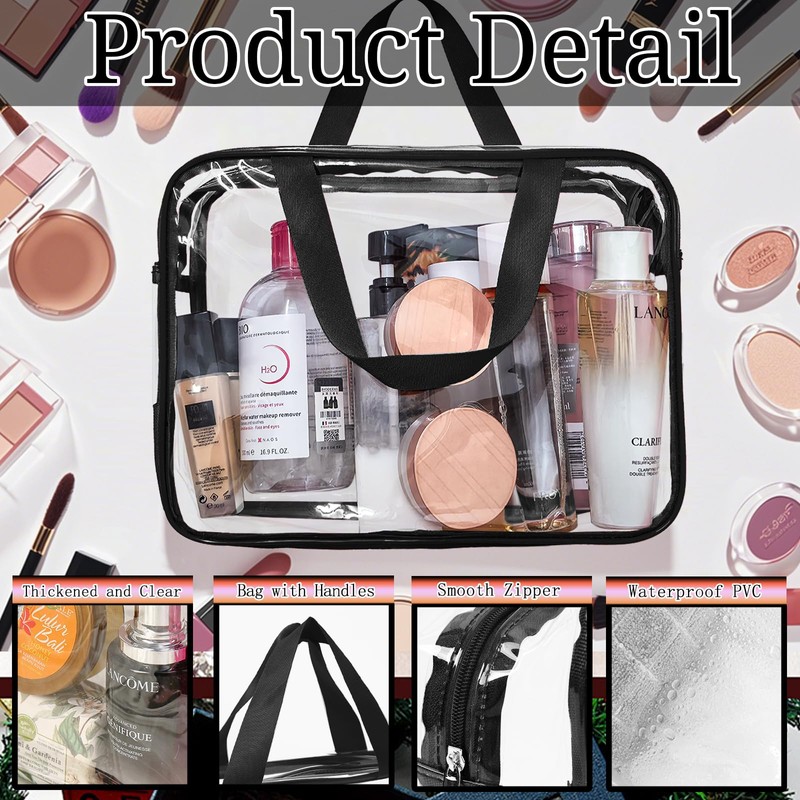 - Easy to Use: Our each bag is equipped with a high-quality metal zipper, smooth not get stuck, facilitating access to travel essentials; The humanized handle design allows this clear bag to be lifted and hung conveniently.