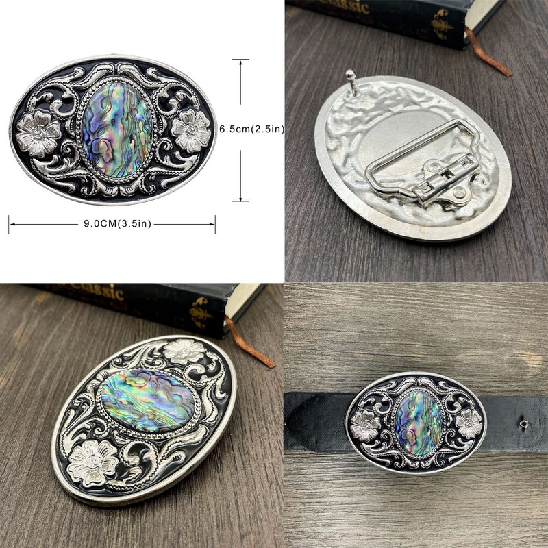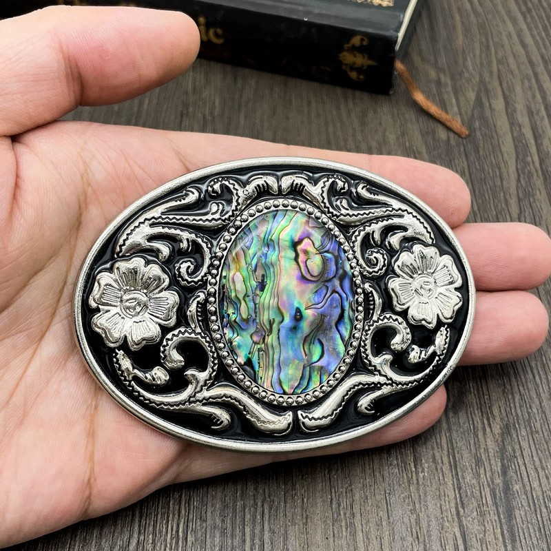 YOQUCOL American Western Cowboy Abalone Shell Pattern Stone Belt Buckle for Men
