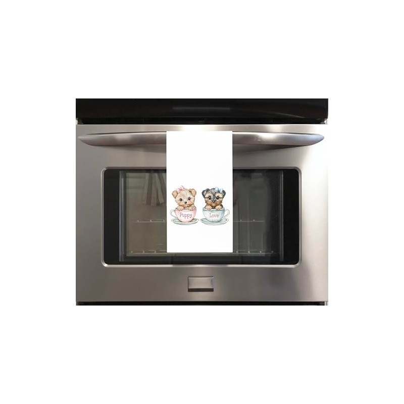 Yorkie Teacup Puppy Love Flour Sack Cotton Hand Towel, Cute Kitchen Decor, Mother's Day Valentine's Day Birthday Christmas Gift Idea for Yorkshire Terrier Dog Lovers