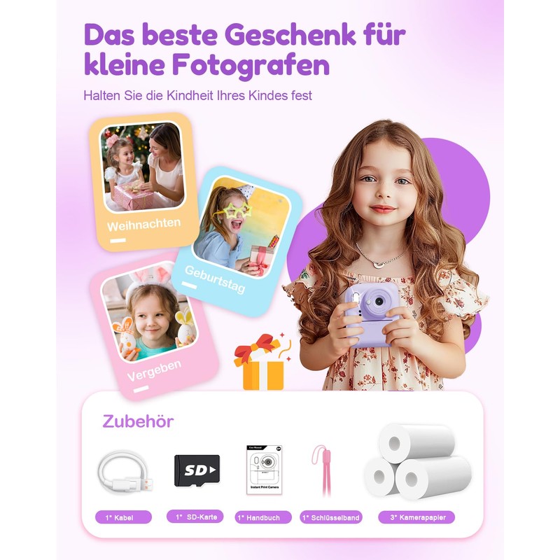 - DIY 1080P camera gift for children: this instant camera for children uses zero ink printing technology, which does not contain ink cartridges or toners. This camera kit contains 3 rolls of thermal paper to shoot 372 photos. for the many unicorn fans multiple fun. All materials are environmentally friendly and no BPA. The print grey level can be adjusted by pressure density in the settings.