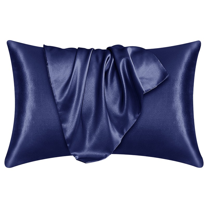 Yorkshire Bedding Satin Pillow Cases 2 Pack – Luxurious Navy Pillowcases For Hair and Skin Standard Size with Envelope Closure Hypoallergenic 50 x 75 cm