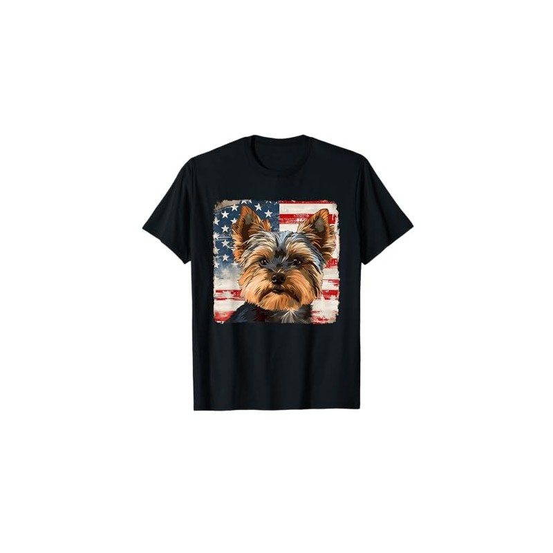 - Make a patriotic statement with our retro Yorkshire Terrier and American flag t-shirt. Ideal for 4th of July, Christmas, or any celebration. A unique gift for any American.