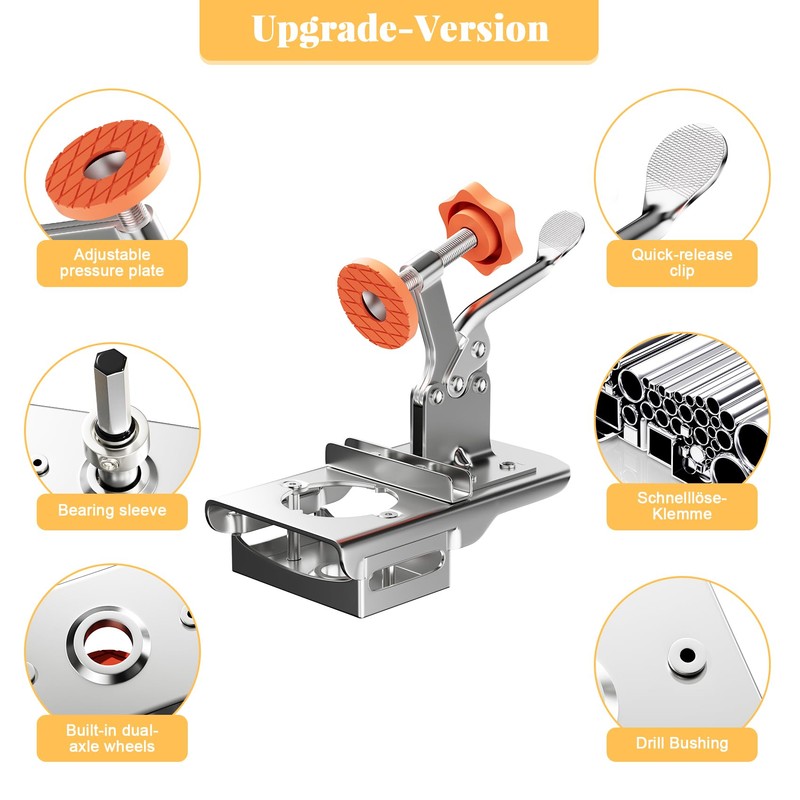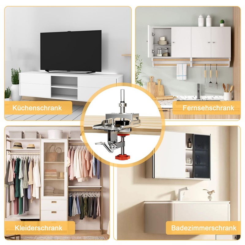 - Easy to use: The user-friendly design of the 35 mm hole opener makes it easy to use, even for beginners. Simply adjust the pressure plate, tighten the boundary ring and secure it with the quick release clip, and you're ready to start your hinge installation.