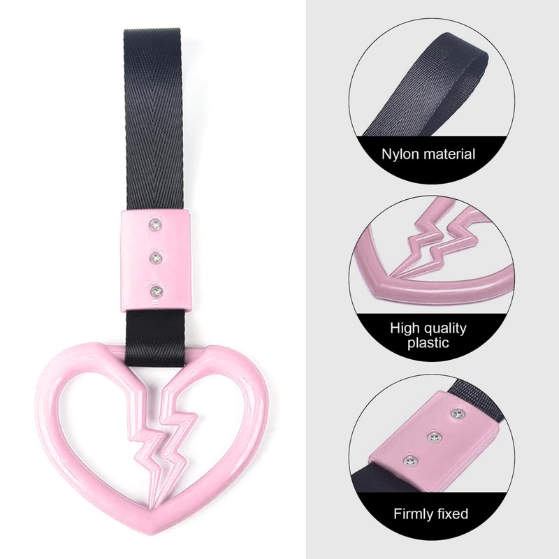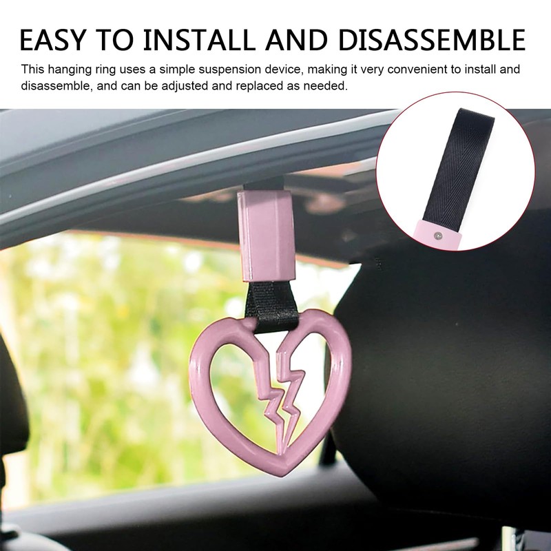 yorpyep 2 PCS Car Warning Hanging Ring, Broken Heart Shaped Personalized Decorative Car Interior Handle Ring, Rear Bumper ABS + Nylon Belt Handle, for Most Cars Trucks (Pink)