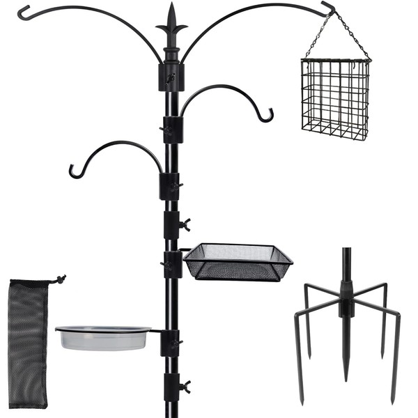 yosager Premium Bird Feeding Station Kit, 90" x 23" Bird Feeder Pole, Planter Hanger, Multi Feeder Hanging Kit with Metal Suet and Bird Bath for Bird Watching, Attracting Wild Birds