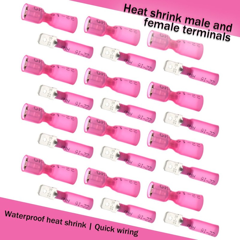 Yosawa 100 Pieces Fully Insulated Heat Shrink Spade Connectors Quick Disconnect Female/Male Wire Crimp Terminals 22-16AWG Red (RSGMH)
