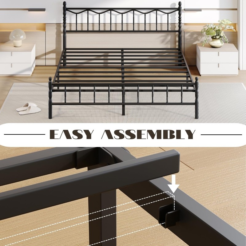 • Easy Assembly: Comes with clear instructions and all required hardware, making assembly a breeze. You can have the bed frame set up in no time, saving you time and effort.