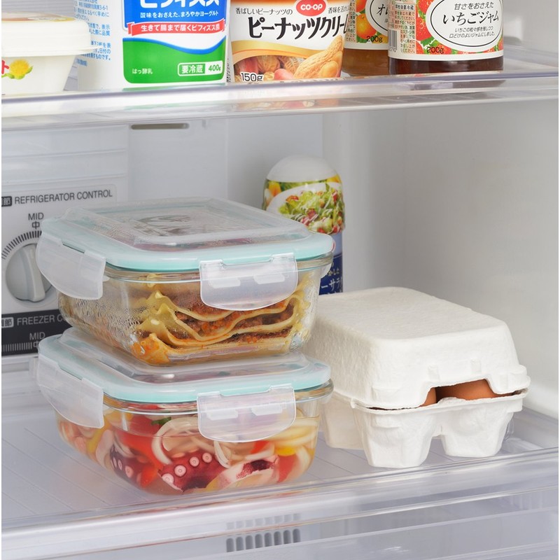 Yoshikawa Glass Container, 4-Point Locking System, Glass Food Storage Container, 640ml (21.6 fl. oz.), 4209337