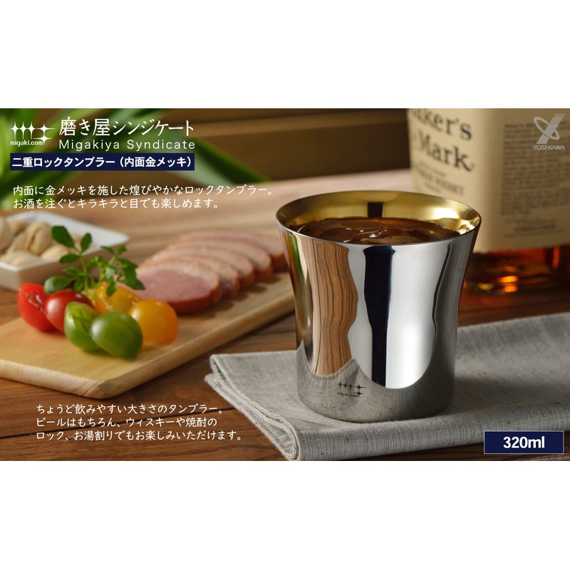 Yoshikawa YJ2444 Tumbler, Gold Plated Inner Surface, 10.1 fl oz (320 ml), Polisher Syndicate, Double Layer, Lock