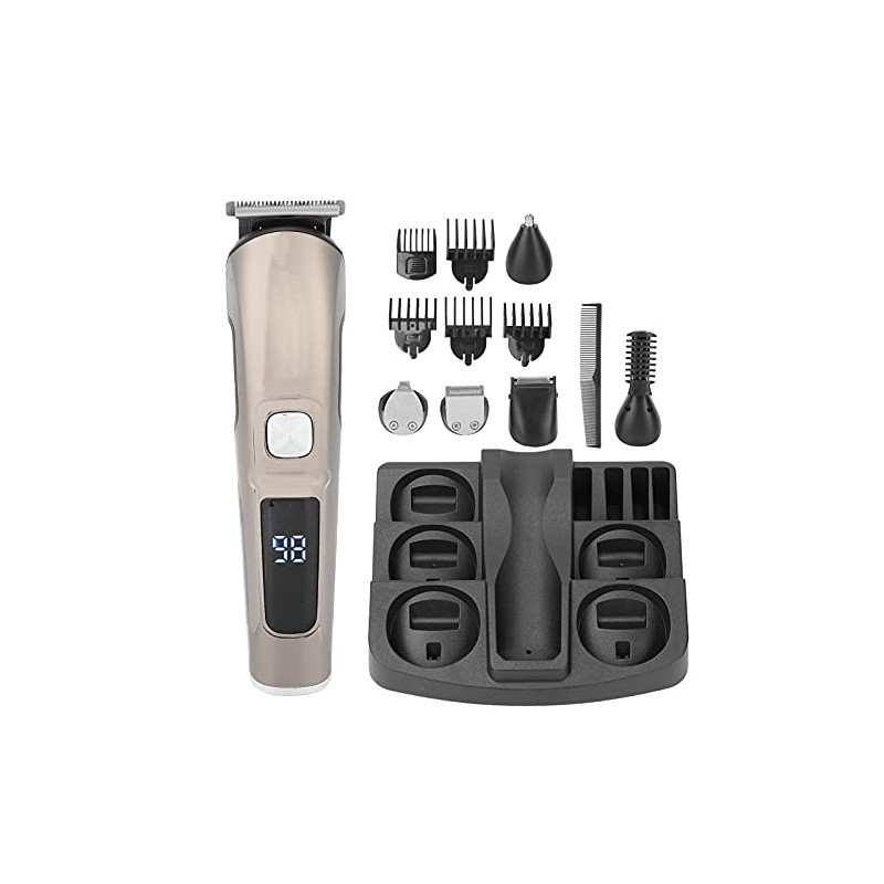 The Professional Hair Clipper set features an array of attachments and an ergonomic design for a versatile grooming experience. Made with ABS and stainless steel, it offers durability and precision. The design ensures easy cleaning, while the LED display keeps you informed about the battery level. With fast USB charging and a cordless operation, this hair clipper is for home or on-the-go grooming.
