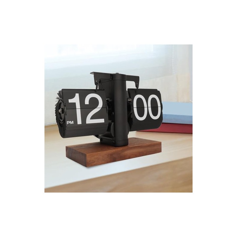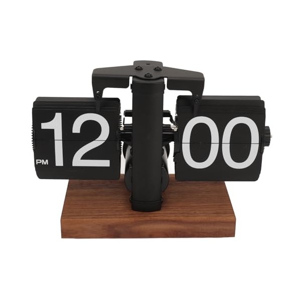 Yosoo Health Gear Reloj Digital Abatible hacia Abajo, Nogal Negro Reloj Automático con de Página Reloj de Escritorio Mecánico con Pilas Decoración para el Hogar Salón, Dormitorio, Estudio