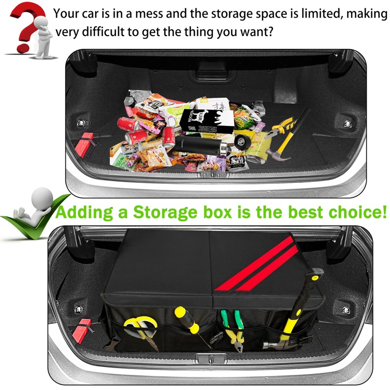- Sturdy & Durable: Trunk organizer is crafted from durable Oxford Cloth, built in sturdy panel, rigid base plates to support each side panel, equipped with 2 compartments, 1 removable divider helps you organize differently sized items, 4 side mesh pockets, front and back pockets are designed to store smaller items.