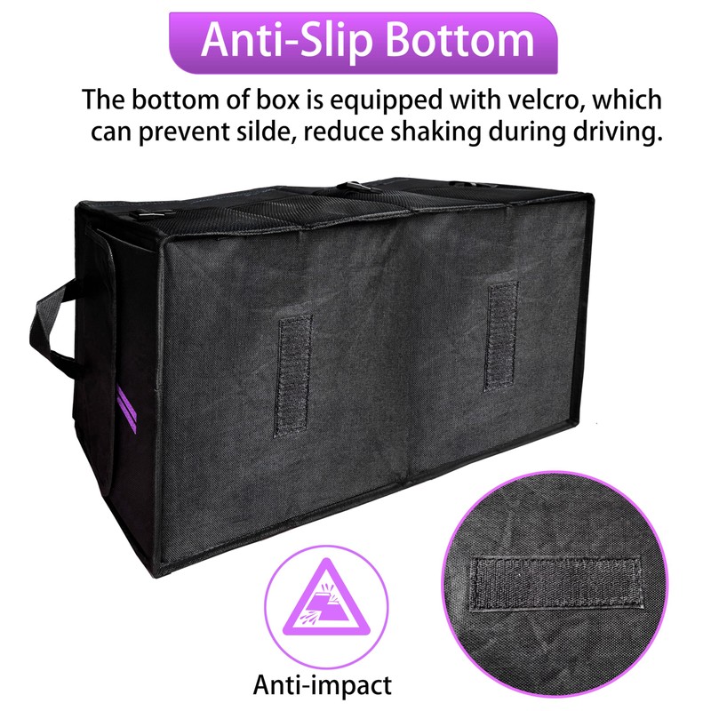 - Upgraded Non-Slip Bottom: Adding two non-slip velcro patches to the bottom of the trunk organizer, provides the secure grip to prevent it from sliding while driving and keep your stuffs stable and organized.
