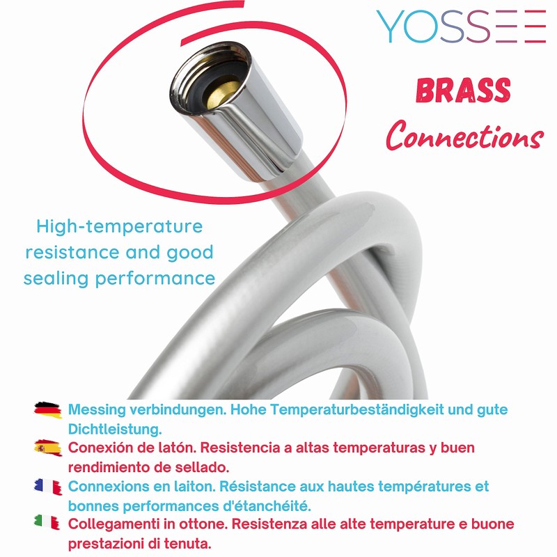 - ✦ HEAVY-DUTY SHOWER HOSE 1.5m: The 59" / 150cm long multilayered shower hose is made of sturdy PVC, woven with heat-resistant polyester yarn, and covered by a scratch-resistant surface. The standard 1/2" brass connector fits Global 1/2" interface and most standard handheld shower heads.
