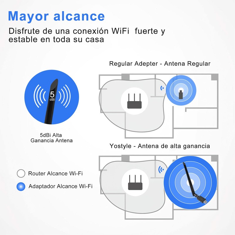 - ⚡ 【5dBi Antenas de alta ganancia】- El adaptador wifi está equipado con antenas duales 5dBi de alta ganancia, lo que mejora en gran medida la recepción de la señal WiFi y la fuerza de transmisión para WIFI más estable, 180 ° antenas giratorias proporcionan una transmisión inalámbrica más fuerte, y se puede recibir señales desde cualquier ángulo, se recomienda inclinar las antenas 40 ~ 60 grados para obtener una mejor señal WIFI.