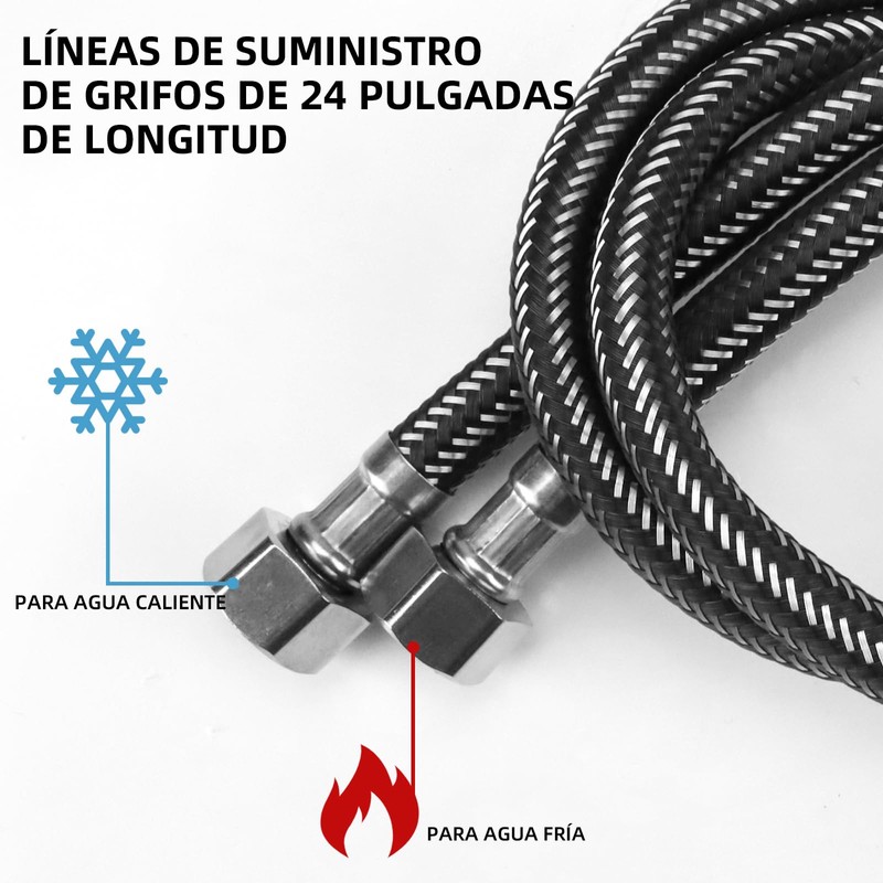 - 【FACIL DE INSTALAR】Nuestros monomando para Lavabo son adecuados para la mayoría de los fregaderos o lavabos. Se puede conectar fácilmente a todos los sistemas de presión de agua fría y caliente estándar,ocupa menos espacio y los accesorios incluyen dos mangueras (caliente y fría)