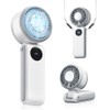 - Carabiner and Strap Included, Neck Hanging, Tabletop, Handheld 3 Ways: The handy fan comes with a carabiner and strap that can be used as a neck fan, tabletop fan, or portable fan, so it can be used as a portable fan. In addition, the head of the handy fan can be folded 90°, and the fan can be expanded to provide air to your face anywhere. You can use it in 3 ways without any place, so it is a great way to prevent heatstroke