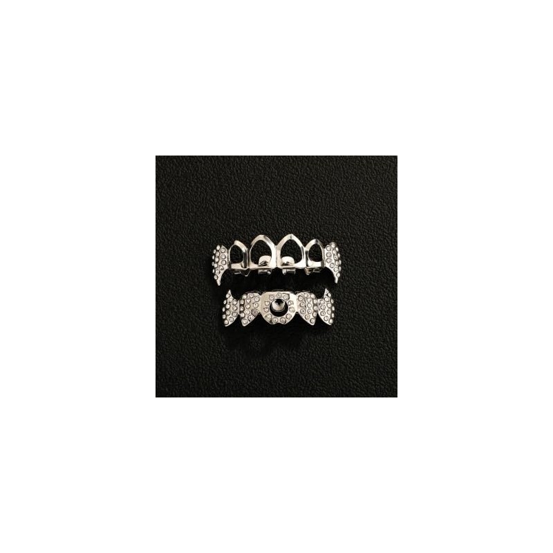 YOSZO Vampire Teeth Fang Grillz Hollow braces for sharp teeth 14K Gold Silver Plated Hip Hop Fangs Top Bottom Teeth Grills for Men and Women, Medium, Gemstone, White Diamond