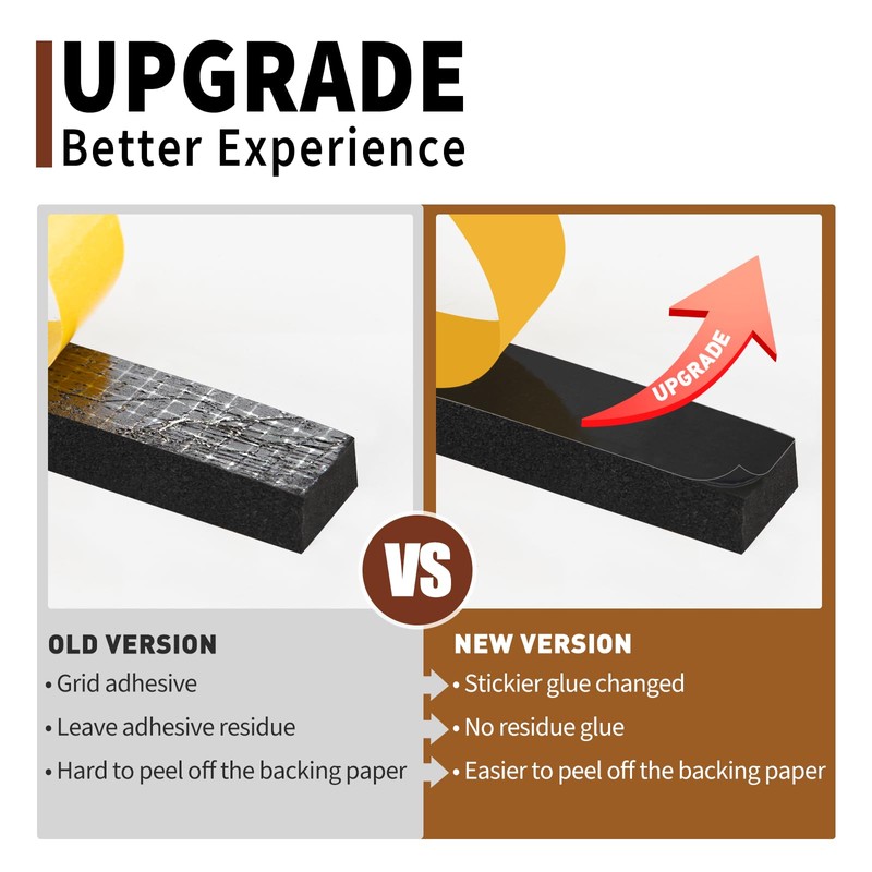 - UPGRADED STRONG ADHESIVE: The foam weather stripping has upgraded strong adhesive backing, waterproof and non-degumming, stick firmly. Compared with grid backing, it has no glue residue and becomes easier to peel off the backing paper