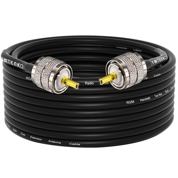YOTENKO CB Coax Cable 40FT, PL259 Coax 50 Ohm, RG58 Coaxial Cable UHF Male to Male Low Loss for CB Radio, CB Ham Radio