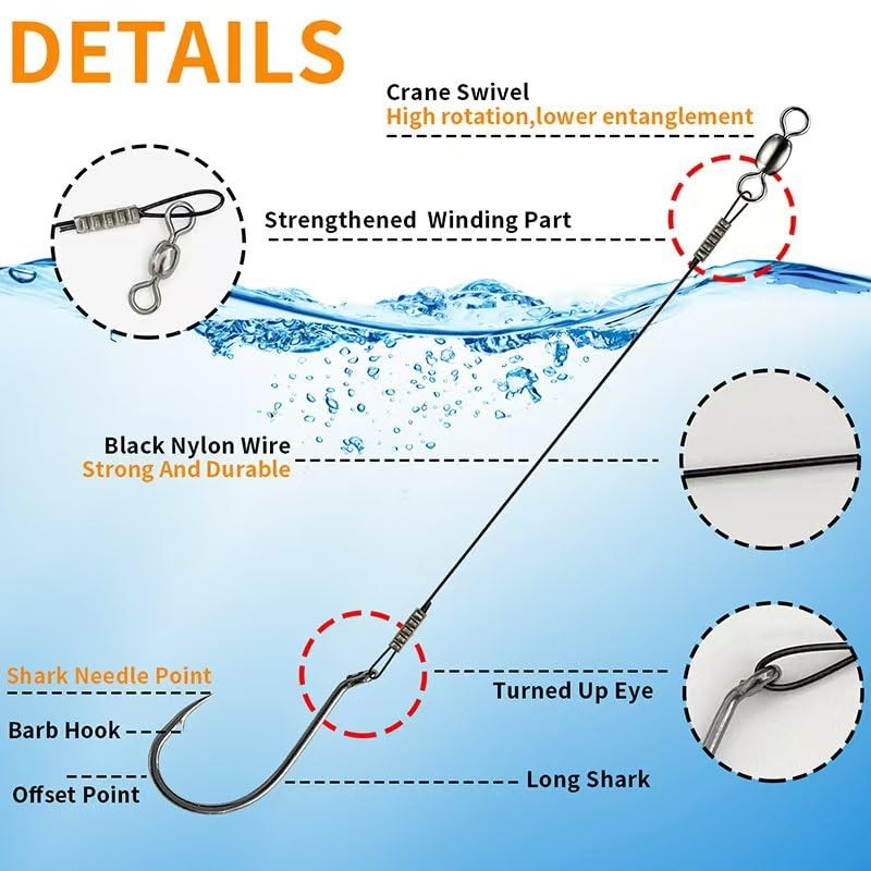 - Durable Leader Wire: Constructed with 7-strand steel wire and two reinforced winding sections, this leader can withstand powerful fish strikes without breaking. Its silver color blends naturally in water, enhancing catch rates by minimizing visibility.