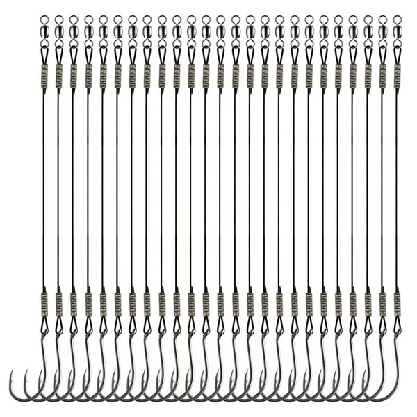 - Package Includes: 25/50pcs saltwater circle hooks with heavy-duty steel wire leaders and sturdy fishing swivels. These hooks come in 10 sizes (1/0, 2/0, 3/0, 4/0, 5/0, 6/0, 7/0, 8/0, 9/0, 10/0), offering versatility for various fishing situations. Larger hooks feature thicker wire and stronger swivels for added durability.
