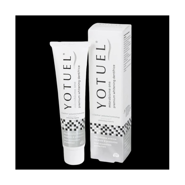 YOTUEL microbiome one premium whitening toothpaste formulated by dentists is the result of microbiome science, patented Saliactive ® technology and YOTUEL teeth whitening experts.