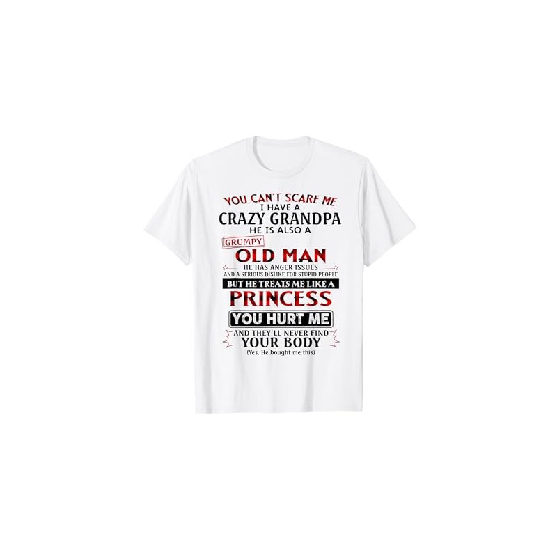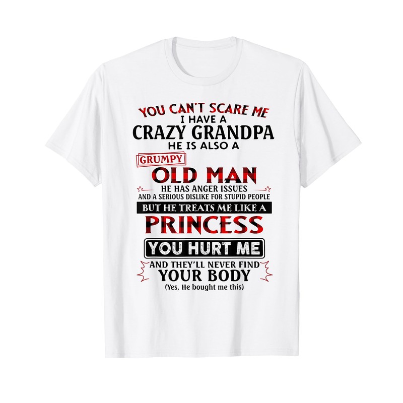 - This funny tee features a design with the quote "You Can't Scare Me I Have A Crazy Grandpa He Is Also A Grumpy Old Man". It’s the nice tee for people who people who love grandkids, grandson, granddaughter.